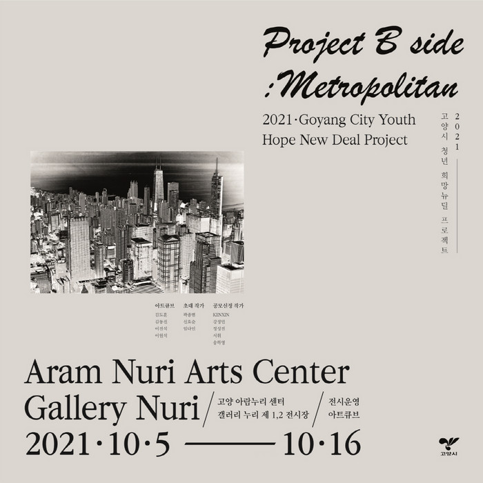 [부자동네타임즈 김인수기자] 고양시 청년작가 단체 아트큐브(대표 이원석)의 전시회‘프로젝트 B 사이드 메트로폴리탄’이 고양 아람누리 갤러리 누리 제1.2전시장에서 10월 5일부터 16일까지 열릴 예정이다.