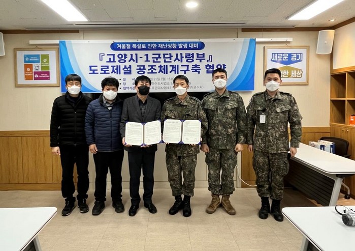 [부자동네타임즈 김인수기자] 고양시가 군과 협력해 강설시 재난상황에 대비하고 안전사고를 예방하기 위해 지난 21일 육군1군단사령부 군수처(처장 김진평)와 함께 ‘도로제설 공조체계구축’ 협약을 체결했다.