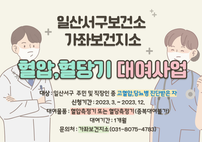 [부자동네타임즈 김인수기자] 일산서구보건소 가좌보건지소는 일산서구 소재 주민 및 직장인에게 혈압기기와 혈당기기를 대여해주고 있다.