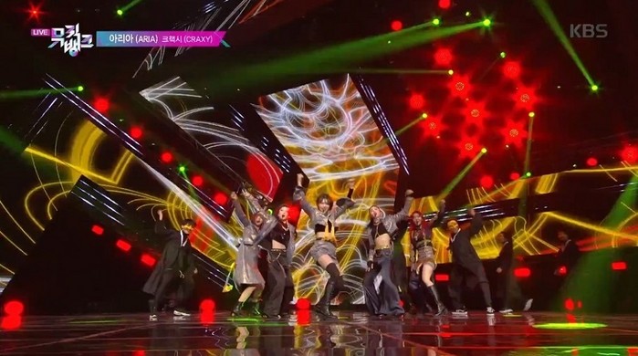 '우아, 카린, 수안, 혜진, 채이'로 구성된 5인조 크랙시(CRAXY)의 데뷔 타이틀 '아리아'는 안무팀과 함께 난이도가 높고 파워풀한 군무를 소화해 시청자의 눈길을 사로잡았다.