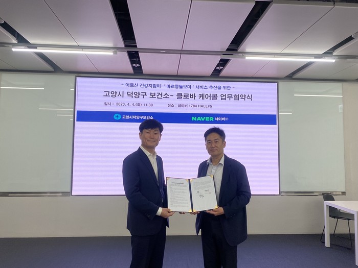 [부자동네타임즈 김인수기자] 고양특례시(시장 이동환) 덕양구보건소가 4월 4일 네이버 제2사옥에서 건강취약계층 돌봄 공백을 해소하고 고독사를 예방하기 위해 네이버와 ‘클로바 케어콜’ 운영 협약을 체결했다.