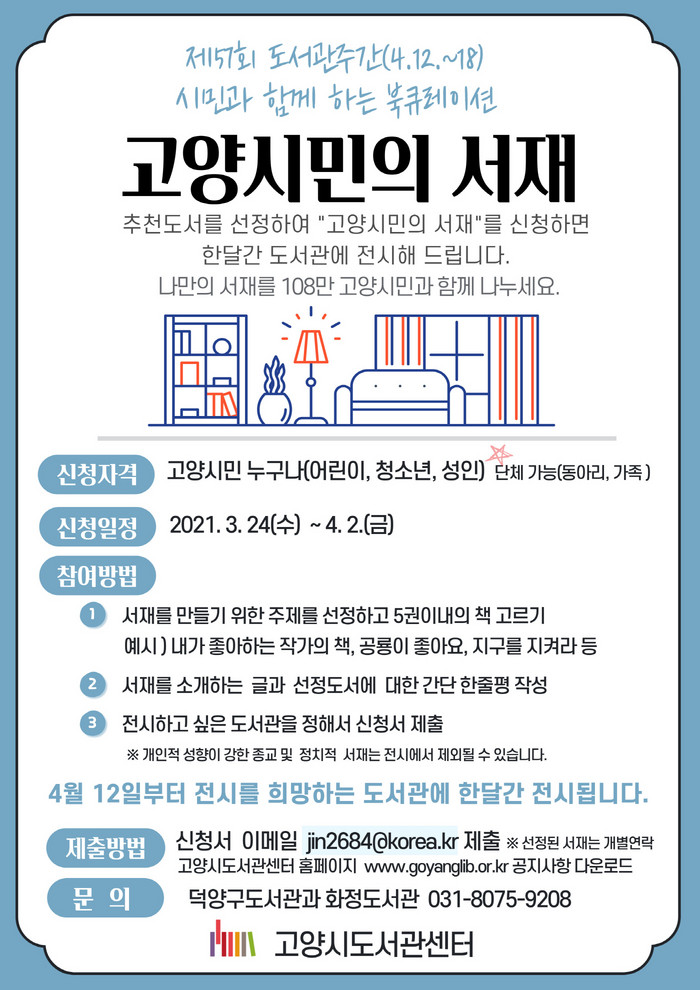 이번 ‘고양시민의 서재’ 신청은 오는 4월 2일까지 이메일로 접수하면 된다.