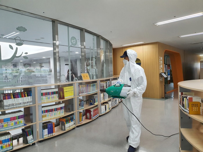 소독은 복지관 전관시설을 비롯해 도서관 장서 소독, 스포츠센터 운동기구 점검 및 위생소독을 구석구석 꼼꼼히 실시하고 더불어 경로식당 바닥에 친환경 염소소독을 실시했다.