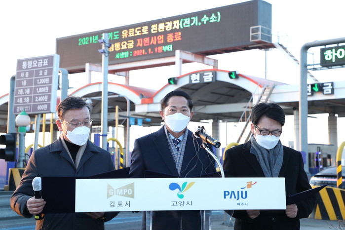 [부자동네타임즈 김인수기자] 이재준 고양시장은 2월 3일 오전 8시, 일산대교 영업소에서 정하영 김포시장 및 최종환 파주시장과 함께 ‘일산대교 통행료 무료화를 위한 공동성명서’를 발표했다.