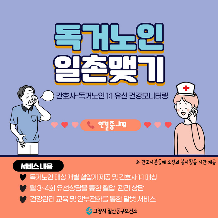 독거노인 일촌맺기는 방문건강관리사업의 일환으로, 혈압관리가 필요한 취약계층에게 혈압계를 지원하고, 병원 간호사와 독거노인을 일대일 매칭해 유선 방식으로 주기적인 건강모니터링을 진행하는 사업이다.