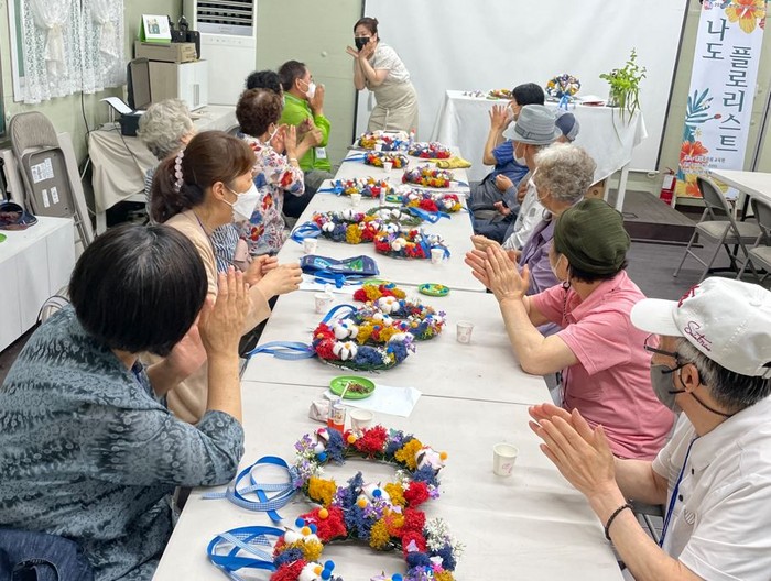 [사진설명] 농림치유 프로그램 ‘은빛 놀이터’ 플라워리스 만들기 프로그램.