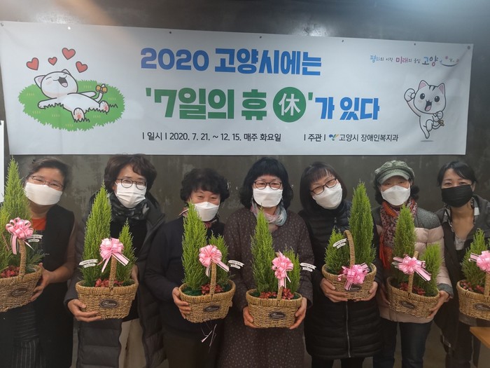 ‘고양시에는‘7일의휴(休)’가있다’는 7주간 주1회씩 다양한 프로그램을 경험하는 소규모 그룹별 참여형 휴식 프로그램이다. 코로나19로 서비스 단절과 외부활동 제한으로 어려움을 겪는 장애인 가족들이 스트레스를 해소하고 비대면 온라인 소통을 통해 정서적 교감도 느낄 수 있도록 운영한다.
