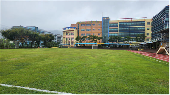 | ▲천연잔디로 단장된 성산초등학교 꿈마당 운동장 모습 |