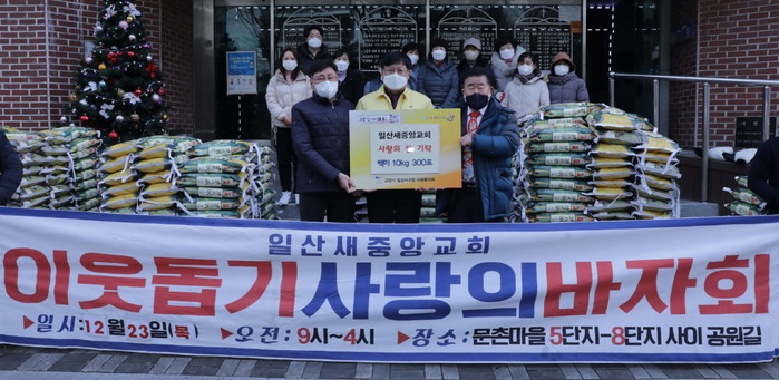 일산새중앙교회는 주변의 소외 이웃을 대상으로 26년째 후원을 이어오고 있으며, 올해 코로나19로 어려운 상황임에도 불구하고 쌀 10kg 300포대를 기탁했다.