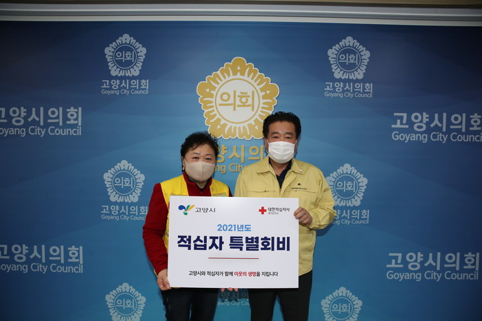 [부자동네타임즈 김인수기자] 고양시의회(의장 이길용)는 1월 22일 고양시의회 의장실에서 대한적십자사 경기도지사에게 2021년 적십자 특별회비를 전달했다.