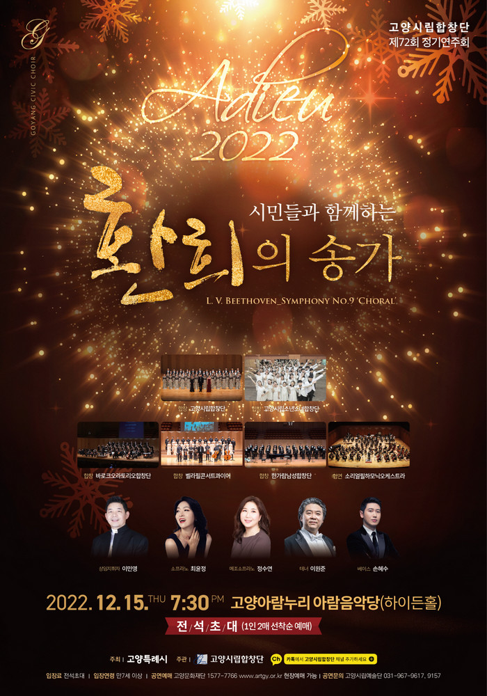 시민들과 함께하는 환희의 송가는 오는 12월 15일(목) 오후 7시 30분 고양아람누리 아람음악당에서 개최된다.