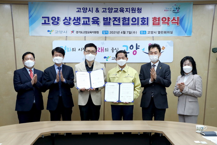 [부자동네타임즈 김인수기자] 고양시와 고양교육지원청이 지난 7일 고양시청 열린회의실에서 ‘고양 상생교육 발전협의회’업무협약을 체결했다.
