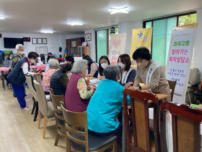 [부자동네타임즈 김인수기자] 고양시 마두2동 지역사회보장협의체(민간위원장 양정자)는 지난 19일 고령인구가 상대적으로 많이 거주하는 강촌마을 5단지에서 가정의 달 5월을 맞아 찾아가는 복지상담소를 운영했다.