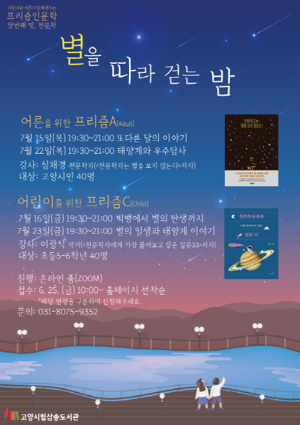 프리즘 인문학의 첫 번째 주제는 천문학이다.‘별을 따라 걷는 밤’을 부제로 기획한 천문학은 어린이를 위한 프리즘C(Child) 강연과 어른을 위한 프리즘A(Adult) 강연으로 나뉜다.