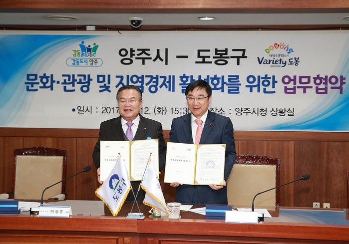 협약식에서 이동진 도봉구청장과 이성호 양주시장은 도시 간 문화·체육 교류를 통해 양 도시 주민 간의 교류를 활성화하고 상호 도시발전을 위한 경험과 노하우를 공유하는 등 상호 협력하기로 뜻을 모았다.
