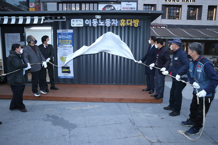 [부자동네타임즈 김인수기자] 고양시가 지난 14일 택배, 대리기사 등 이동노동자 관계자 20여 명이 참석한 가운데 이동노동자 쉼터 ‘휴다방’의 설명회 겸 개소식을 화정역 광장에서 개최했다.