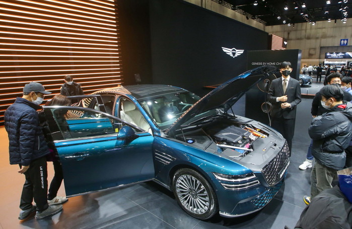 이 날 기아자동차, 비엠더블유, 메르세데스-벤츠, 제네시스 등 전기차를 주력 모델로 내세운 부스에는 남녀노소 할 것 없이 많은 관람객들로 북적였다. 서울 강북구에 사는 김씨(70)는 “시대가 변화하면서 환경에 대한 관심이 많아지고 있는데, 매연 없는 전기 배터리와 차량 내부 자재를 재활용 플라스틱을 쓰는 자동차를 보고 깊은 감명을 받았다”고 말했다.