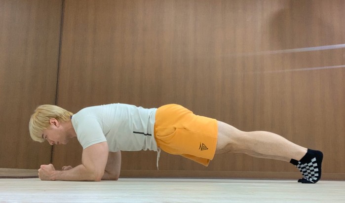 첫 동작은 플랭크 가장 대표적인 운동일 것이다.