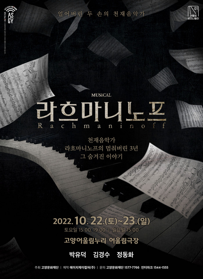 [부자동네타임즈 김인수기자] 고양문화재단(대표이사 정재왈)은 2022 어울림공연나들이 시리즈의 첫 번째 공연으로 뮤지컬<라흐마니노프>를 10월 22일과 23일, 양일간 고양어울림누리 어울림극장에서 선보인다.