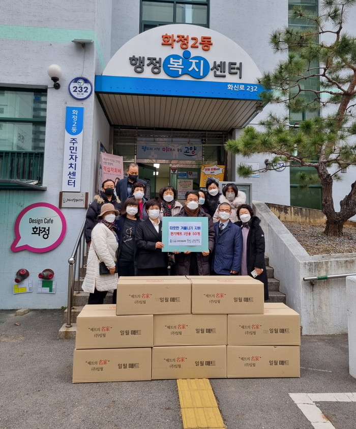 이번 전달식에서는 신일교회가 마련한 1인용 전기매트 총 50개를 화정2동 지역 주민을 위해 후원했으며, 해당 물품은 관내 독거노인 등 관내 취약계층에게 전달될 예정이다.