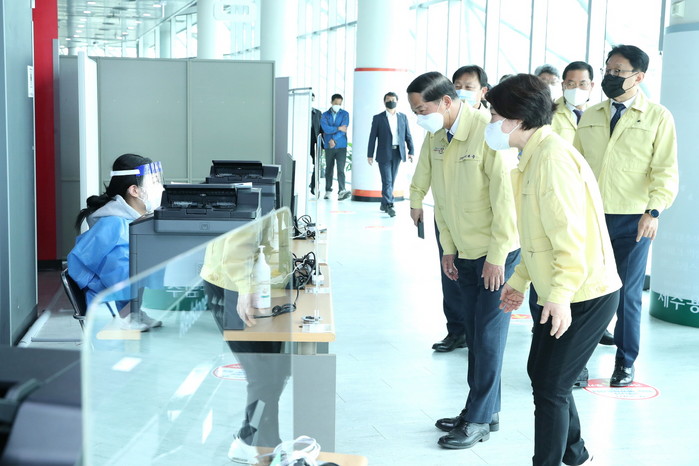 [부자동네타임즈 김인수기자] 이재준 고양시장이 28일 개소한 ‘고양시 코로나19 안심 예방접종센터(일산서구)’에 방문했다. 코로나19로 인한 격무에 시달리는 직원들을 격려해주고 있다. 이번 안심 예방접종센터는 일산동구 꽃전시관과 덕양구 어울림누리 체육관에 이은 3번째 안심 예방접종센터로서, 일산서구 중앙로 1601 고양체육관 2층에 마련됐다. 하루에 300명에서 1,200명까지 접종 가능하다.