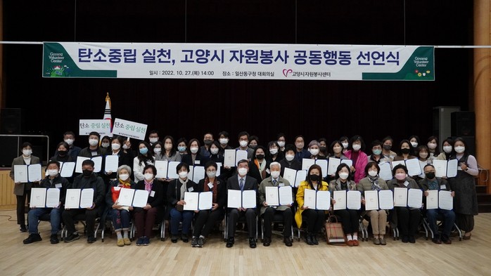 [부자동네타임즈 김인수기자] 고양시자원봉사센터(이사장 이동환)은 지난 27일 일산동구청 대회의실에서 탄소중립 실천, 고양시 자원봉사 공동행동 선언식을 개최했다.