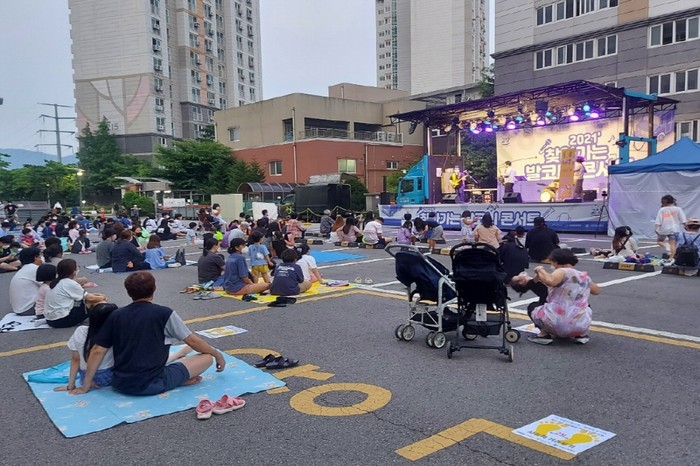 시는 공연장에 별도의 객석을 마련하지 않았다. ‘아파트 발코니 콘서트’답게 지역 주민들이 집에서 편안하게 공연을 즐기게 하기 위함이다.