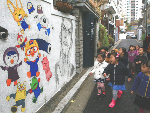 덕분에 동네가 밝아졌다. 캐릭터 벽화는 동네 아이들에게 인기 만점이고, 화단이 생긴 담장 주변에는 쓰레기 투기도 줄었다.