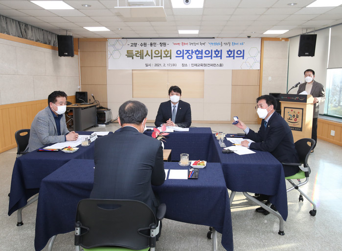 [부자동네타임즈 김인수기자] 고양시의회(의장 이길용)가 특례시의회의 성공적인 출범을 위한 4개 특례시의회 의장협의회 회의를 2월 17일 고양인재교육원에서 개최했다.