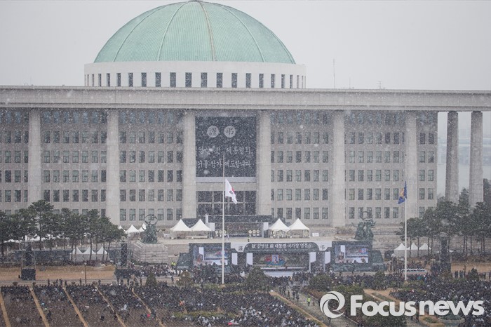 | △ 26일 서울 여의도 국회에서 고 김영삼 전 대통령 국가장 영결식이 열리고 있다. 사진공동취재단 photo@focus.kr |
