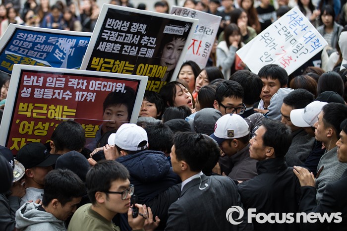 한편 박근혜 대통령은 이화여대 정문에서 이 대학 학생들의 거센 항의를 받았다.