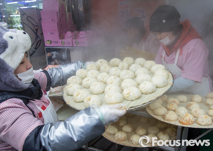 (서울=포커스뉴스) 2일 오후 서울 중구 남대문시장의 분식음식점 만두에 김이 모락모락 올라오고 있다. 기상청은 오늘 밤부터 기온이 크게 떨어지기 시작해 내일 전국 대부분 지방에 눈이 내릴 것으로 전망했다.