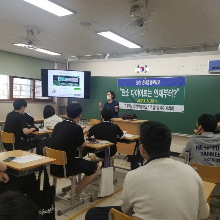 [부자동네타임즈 김인수기자] 고양시 일산서구 주엽1동 주민자치회(회장 김영식)는 일산고등학교에서 지난 6월 30일부터 7월 2일까지 3일 간 탄소중립 가치에 대한 교육을 실시했다.