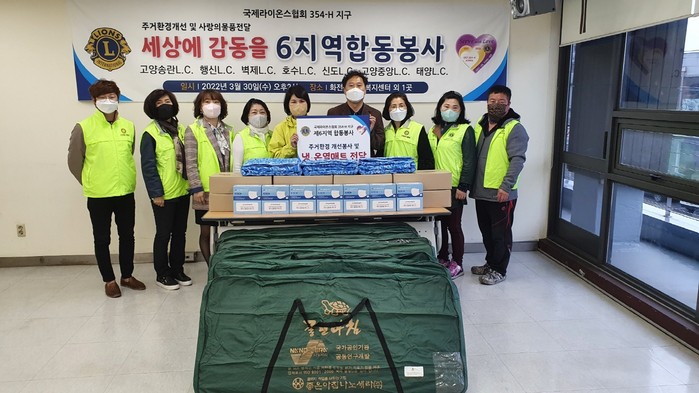 [부자동네타임즈 김인수기자] 고양시 덕양구 화전동행정복지센터(동장 서은원)는 지난 3월30일, 국제라이온스협회 354-H 지구 제6지역 연합 회원들이 한일의료기 주식회사의 협조를 받아 준비한 전기매트와 쿨 매트, 마스크를 기부했다고 밝혔다.