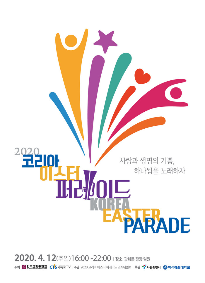 또한 조직위에서는 4월 12일 2020 코리아 이스트 퍼레이드에 대해 "대규모 거리 퍼레이드와 함께 광화문에서는 시민 음악회와 각종 전시, CCM 버스킹 등 다양한 행사가 함께 진행될 예정이다."고 전했다.