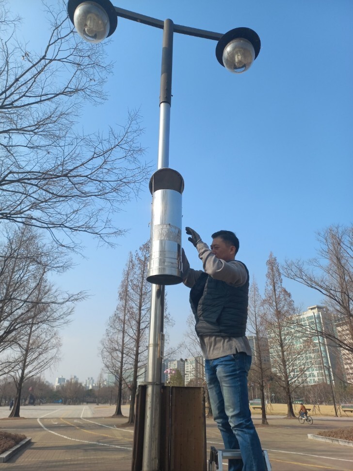 해충유인퇴치기는 해충이 좋아하는 빛의 파장을 이용해 모기 등 해충을 유인・퇴치하는 방제 장비로 공원 및 해충발생 다발지역 등에 50대가 설치돼 있다.