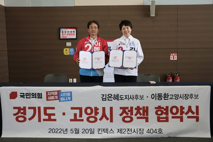 이 후보는 중앙선대위 현장 회의 이후 김은혜 경기지사 후보와도 정책협약을 맺었다.