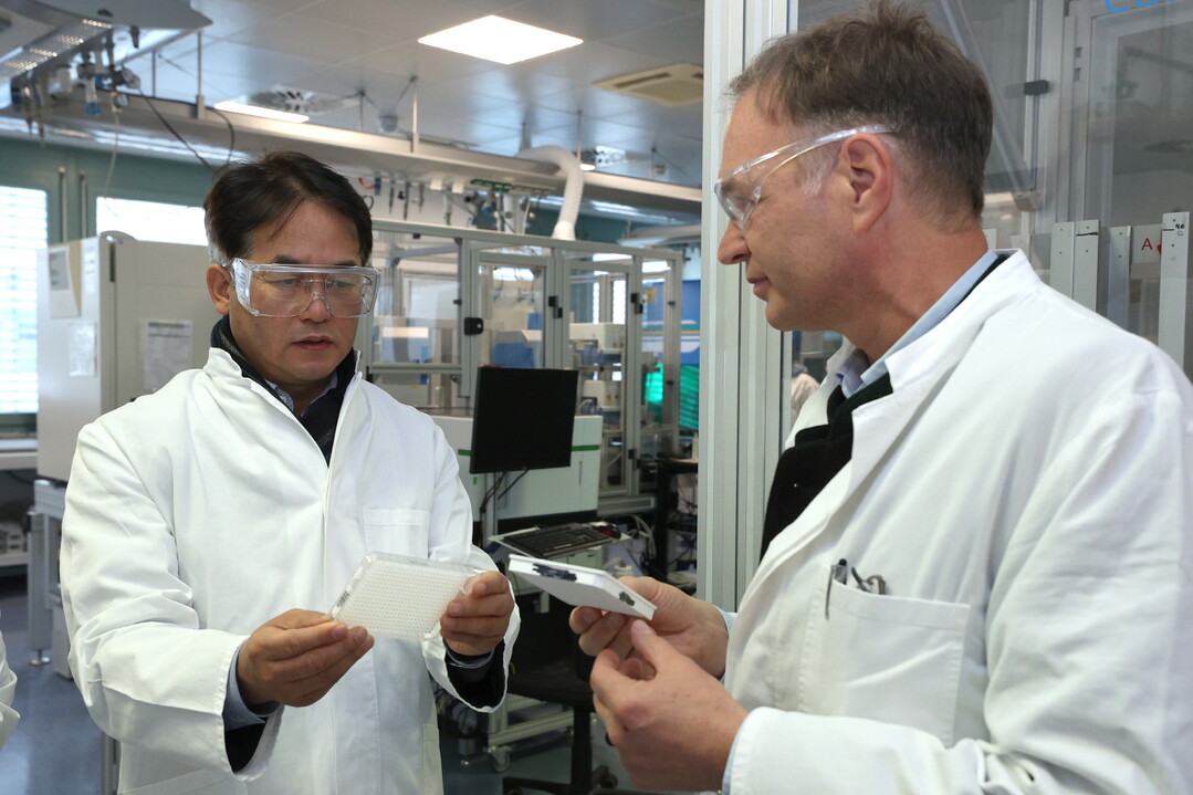 이 시장은 간담회 후 입주기업인 애세이웍스 대표 랄프 슈반트너(Ralf Schwandner)의 안내로 애세이웍스를 직접 둘러보며 연구시설을 살폈다.