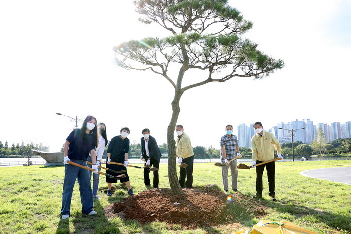 [사진 설명] 이재준 시장과 시 관계자들이 준공 기념식수를 심고 있다.