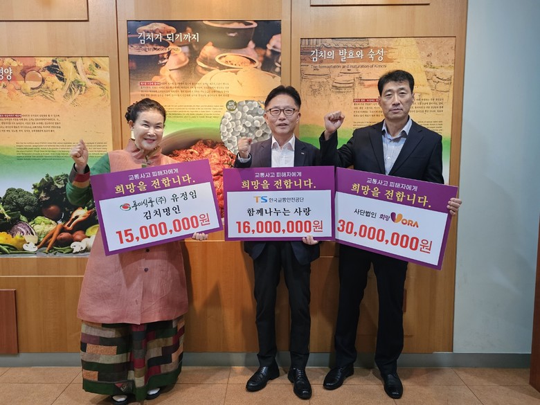 한국교통안전공단(이사장 정용식, 이하 TS)은 31일(목) TS 임직원 급여 우수리 ‘함께 나누는 사랑’, (사)희망VORA, 풍미식품과 함께 자동차사고 피해가정에 김장 김치 12.2t을 전달했다”고 밝혔다.
