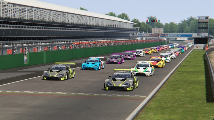 [사진설명] 2020 CJ대한통운 e슈퍼레이스 정규리그의 8라운드 결승 레이스가 시작되기 전 참가 차량들이 그리드에 정렬해 있다.
