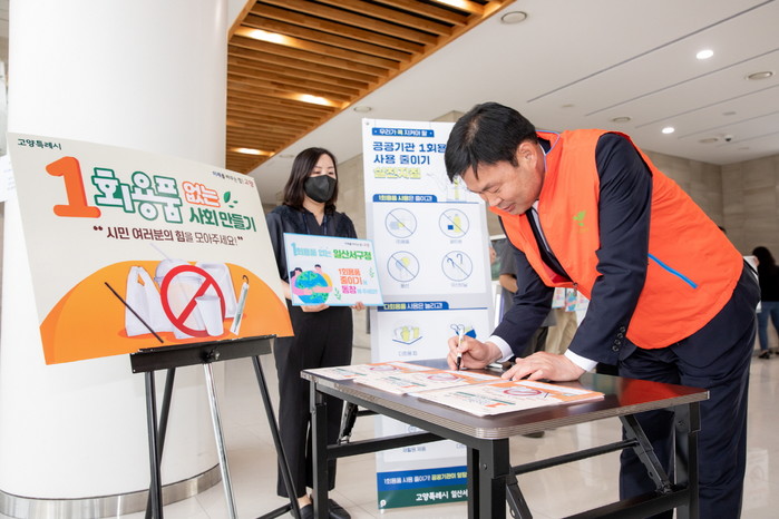 [부자동네타임즈 김인수기자] 고양특례시 일산서구는 지난 22일 전 직원의 1회용품을 줄이기를 위한 자발적인 노력을 독려하고, 공공기관으로서 기후변화 위기 상황 대응과 탄소중립의 중요성을 인식·실천하는 계기를 만들고자 ‘1회용품 없는 날’ 홍보 캠페인을 전개했다.
