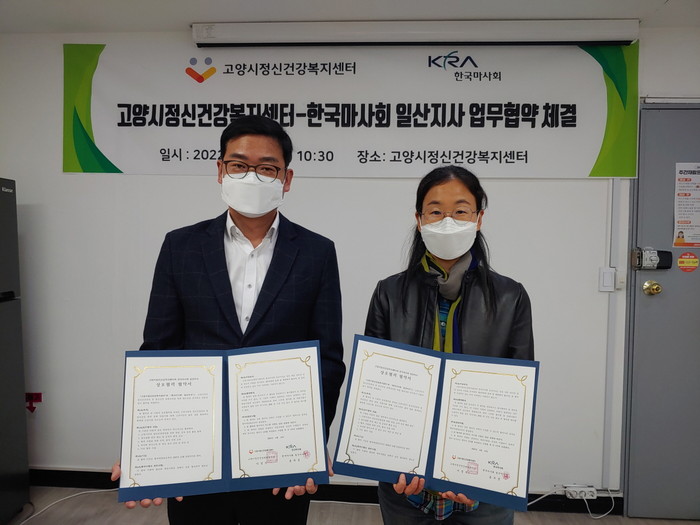 이날 한국마사회 일산지사는 고양시민의 정신건강증진과 인식개선을 위한 사업에 인적, 물적 자원을 지원·협력하기로 했으며 고양시정신건강복지센터는 마사회 직원과 고객을 대상으로 정신건강 관련 정보제공, 토닥토닥버스 이동 상담, 정신건강교육 등의 서비스 지원을 협의했다.
