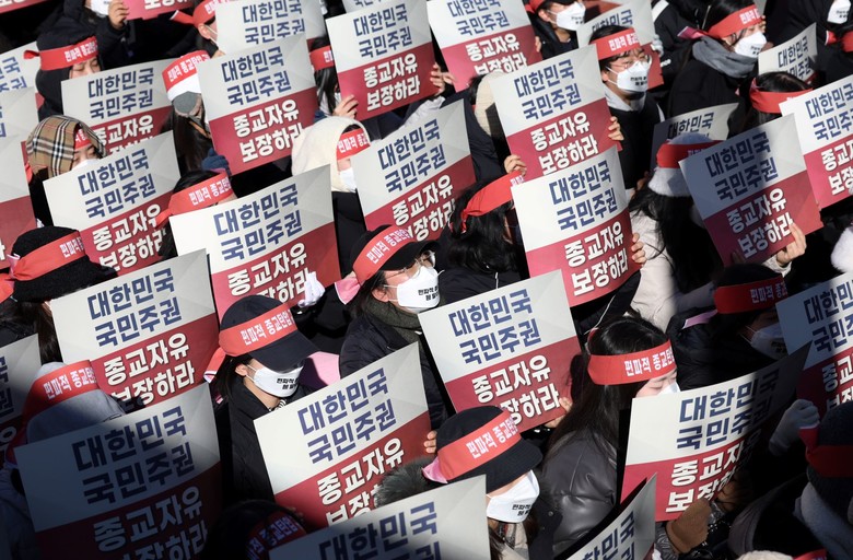 또 다른 자유 발언을 맡은 신동국 김포교회 담임강사는 “종교와 정치는 분리돼야 한다”며 “정치가 종교에 간섭하는 것은 헌법에 반하는 행위”라고 강조했다.