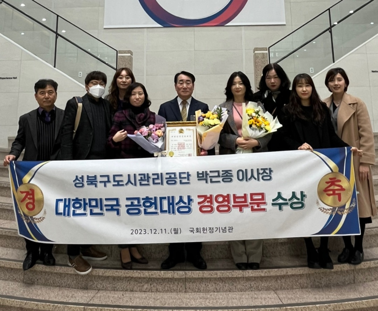 성북구도시관리공단 박근종 이사장은 12월 11일 국회 헌정기념관에서 개최한 ‘2023 제4회 대한민국 공헌대상’ 시상식에서 영예로운 행정·경영대상을 수상했다.