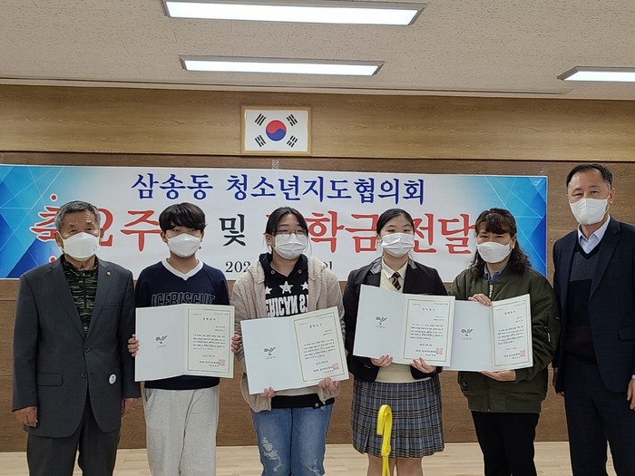 [부자동네타임즈 김인수기자] 고양시 삼송동 청소년지도협의회(회장 김영배)는 지난 25일 삼송동 행정복지센터에서 코로나19로 인한 어려운 환경 속에서도 학업성적이 우수하고 모범적인 청소년 4명에게 장학금 110만원을 전달했다.