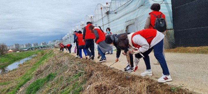이날 능곡동장, 이해림 시의원 등 20여 명의 봉사자가 참여했으며 (재)고양국제꽃박람회 ‘2022 고양시민 꽃씨 지원 사업’ 을 통해 지원받은 금영화, 수레국화, 샤스타 데이지 꽃씨를 주민 통행이 많은 대장천변, 대장습지 및 신평동길 주변에 중점적으로 파종했다.