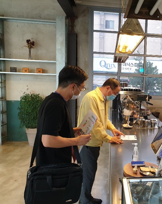 시는 커피숍 방역수칙 체크리스트에 따라 종사자 및 이용자 마스크 상시착용, 에어컨 가동에 따른 주기적 환기, 이용자 간 거리두기 준수, 상시 소독 여부 등을 점검한다.