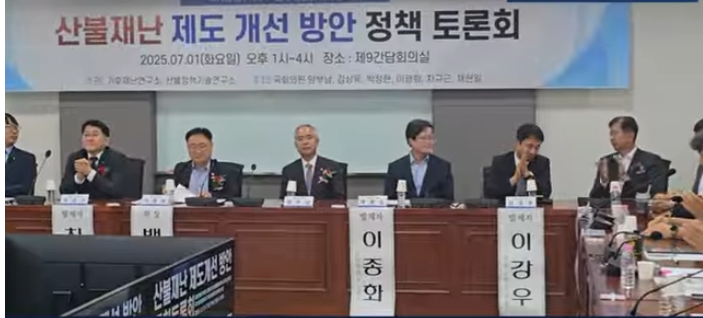 또한 참석자들은 △산불 진화 장비의 현대화 △지역 맞춤형 예방 교육 확대 △피해 주민에 대한 신속한 복구 지원 체계 마련 △국가재난관리체계 내 산불 대응 기능 강화 등 구체적 제언을 쏟아냈다.