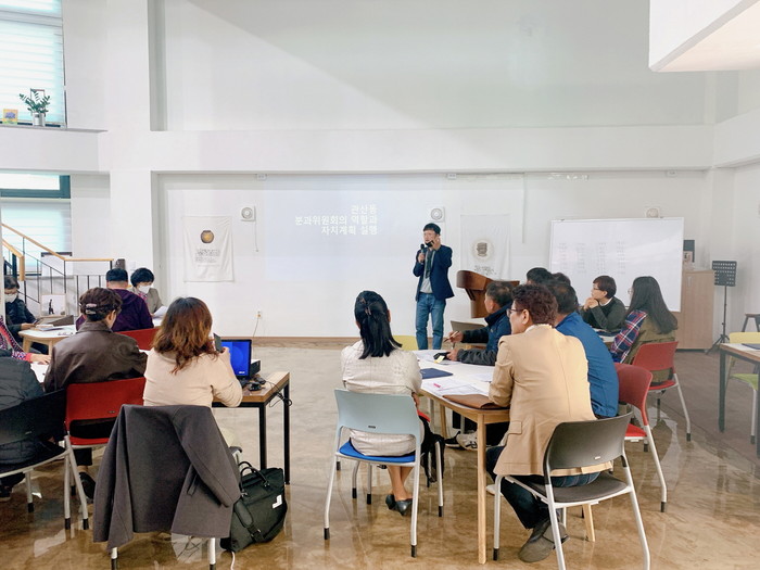 김선정 관산동장은 “이번 워크숍은 교육과 치유, 토론을 함께 진행하는 짜임새 있는 구성으로 진행되어 주민자치회 위원님들의 적극적인 참여가 돋보였다. 앞으로 주민자치회의 발전을 위해 지원을 아끼지 않겠다”라고 말했다.